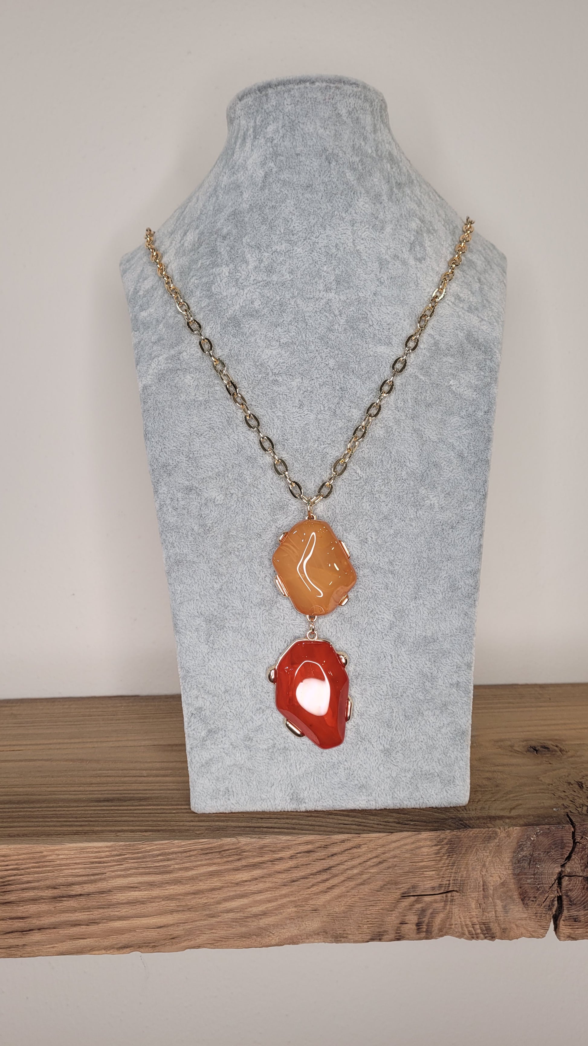 collana lunga con pendente oro e arancio